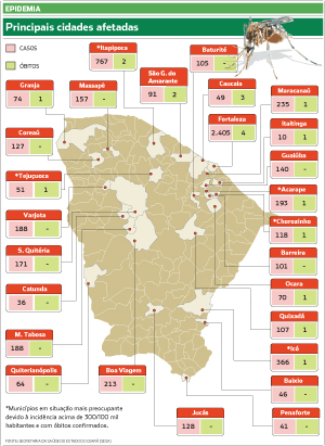 8308 casos da doença no Estado. Além disso foram registrados 20 óbitos pela forma mais grave da doença. O último balanço do Ministério da Saúde aponta o Ceará como líder em óbitos. LEIA MAIS...
